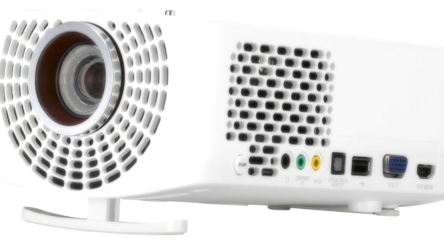 LG almost never applies the classic look to its products, and the PF1500G is no exception. In it, the manufacturer used an extraordinary form, due to which the model not only visually appears miniature, but in reality is so.