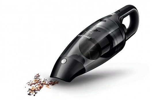 Philips FC6141 is battery operated. It has an alkaline Ni-MH battery (nickel metal hydride), and the Philips MiniVac FC6141 / 01 comes without a battery, powered only by a cigarette lighter. The length of the cord is sufficient so that by passing the wire through the open driver's door, you can easily remove the debris in the trunk of the car. Philips FC6141 operates on a fully charged battery for more than 10 minutes. The battery is charged for about 18 hours.