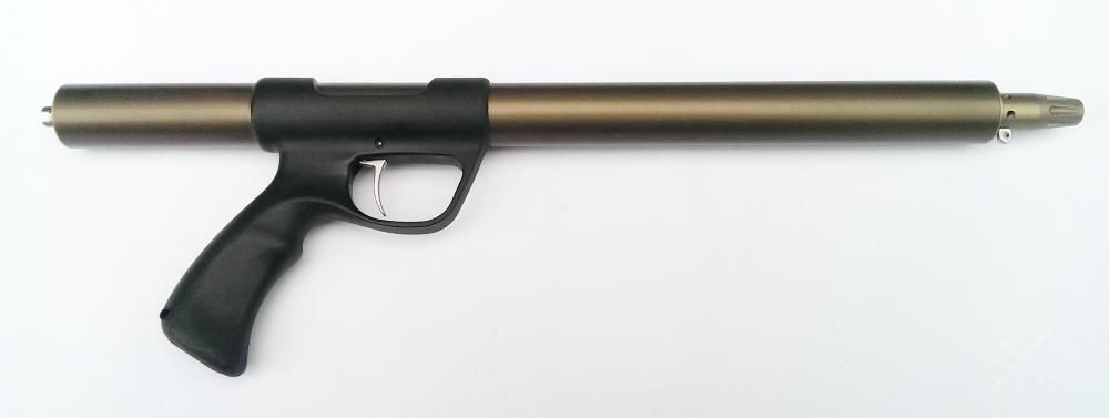 Interestingly designed compact and powerful enough gun for underwater hunters. It has an ergonomic handle with active Kevlar ejection and a harpoon position similar to classic ballista crossbows. This design neutralizes the device tossing from recoil. The inner muzzle is located very close to the top of the receiver, which contributes to a more accurate aiming. Comes with: boom, air pump, transport cover and bump stop. Average price: from 25,000 rubles.