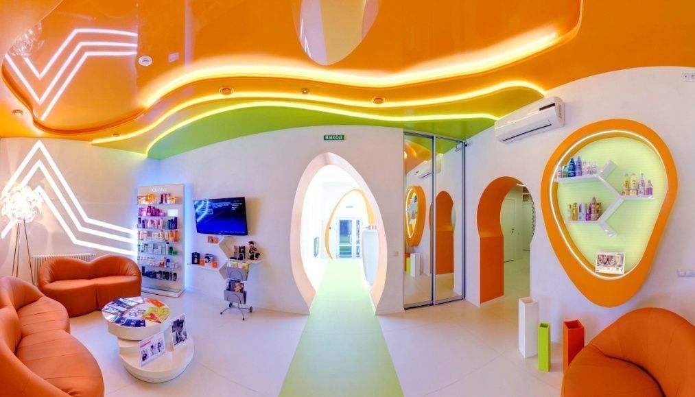 I found a place right in the center of Perm - in the Atrium Coliseum. You can sign up through the social network Vkontakte, Viber, WhatsApp, Instagram or by phone +7 902 640-40-48. The interior is pleasant to the eye, the room uses light shades in the furniture, a lot of mirrors. The emphasis is on red lamps and armchairs.