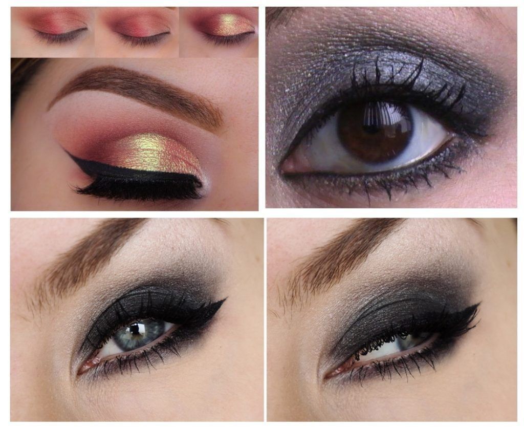 The style is considered expressive and refers to the vamp image. Black and gray is not the only option, brown, purple and green colors are common. A brown and deep gray palette is used. Smoky Eyes comes in 3 shades: very light, intermediate and dark. Various shades of Smoky Eyes are used for evening and daytime makeup.