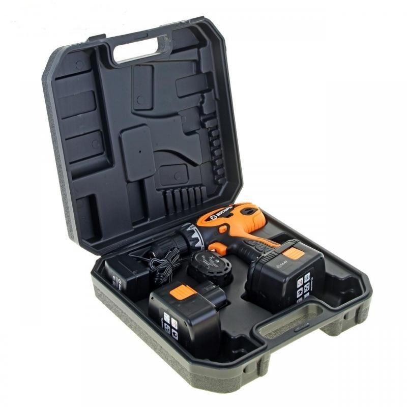 Battery capacity 1.3mAh, which is made of nickel-cadmium materials. 14.4 volts - this is the voltage received by the battery pack. All items are neatly packed into a hard case. A spare battery is also supplied.