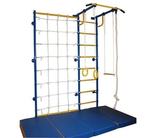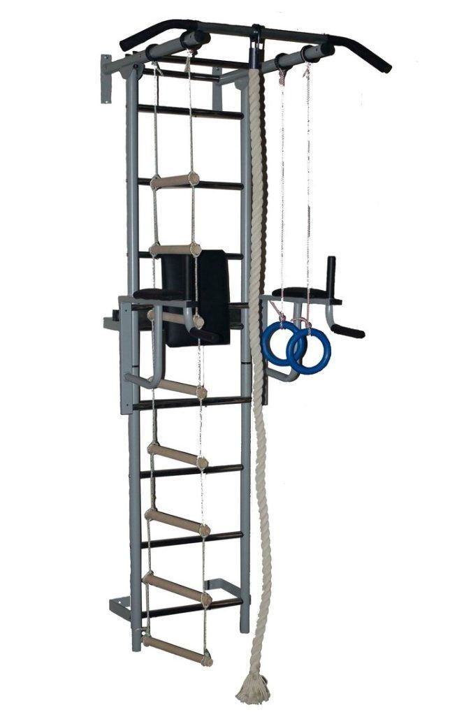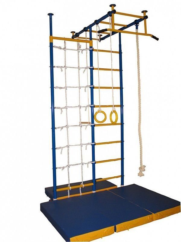 Components of the complex: horizontal bars between the floor and ceiling, gymnastic rings, rope and rope ladder.