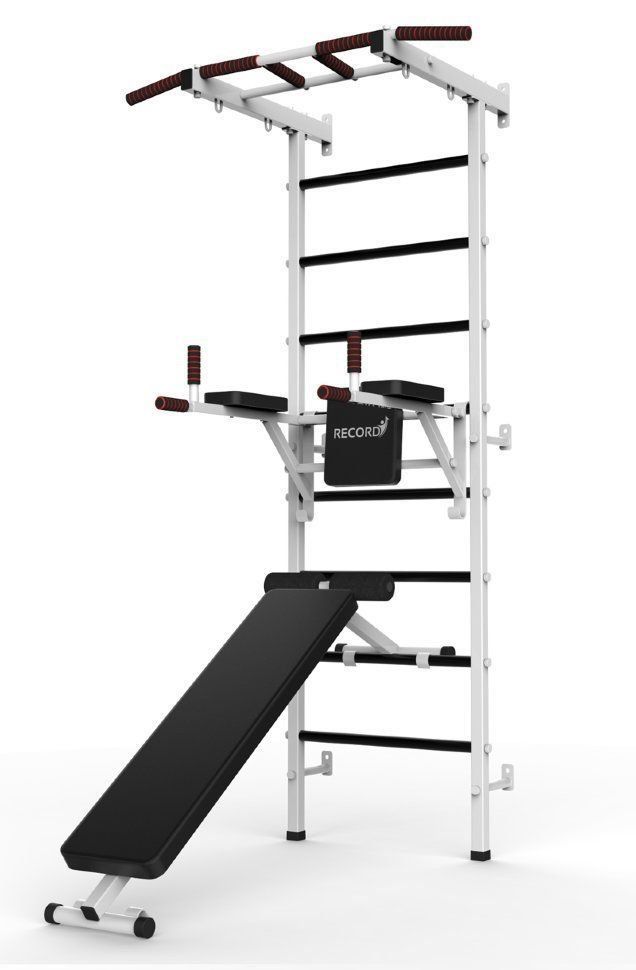 Complete set: horizontal bar with handles for any grip, which is adjustable in height. A hinged trainer, consisting of bars, a support for the barbell and training the press. Bench for abdominal muscles, bench press and other exercises.