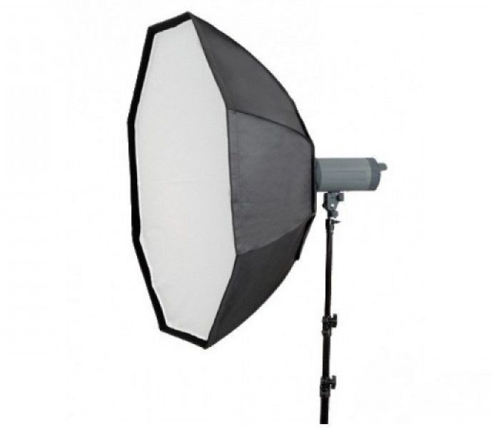An excellent octagon designed for portrait, full-length and subject photography. Its size is 120 cm. This is a medium-sized device. Sounds like absolutely any studio flash that has a Bowens mount.
