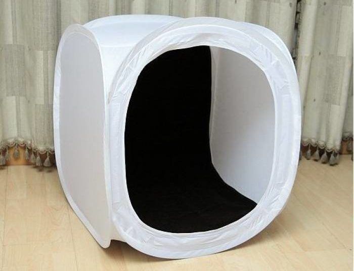 This is an ultra compact and very cheap light cube softbox (1000 rubles). Designed for items that do not exceed 20 centimeters in size. To make a good shot, the light cube should be 2 times the size of the subject. That's what the experts say.