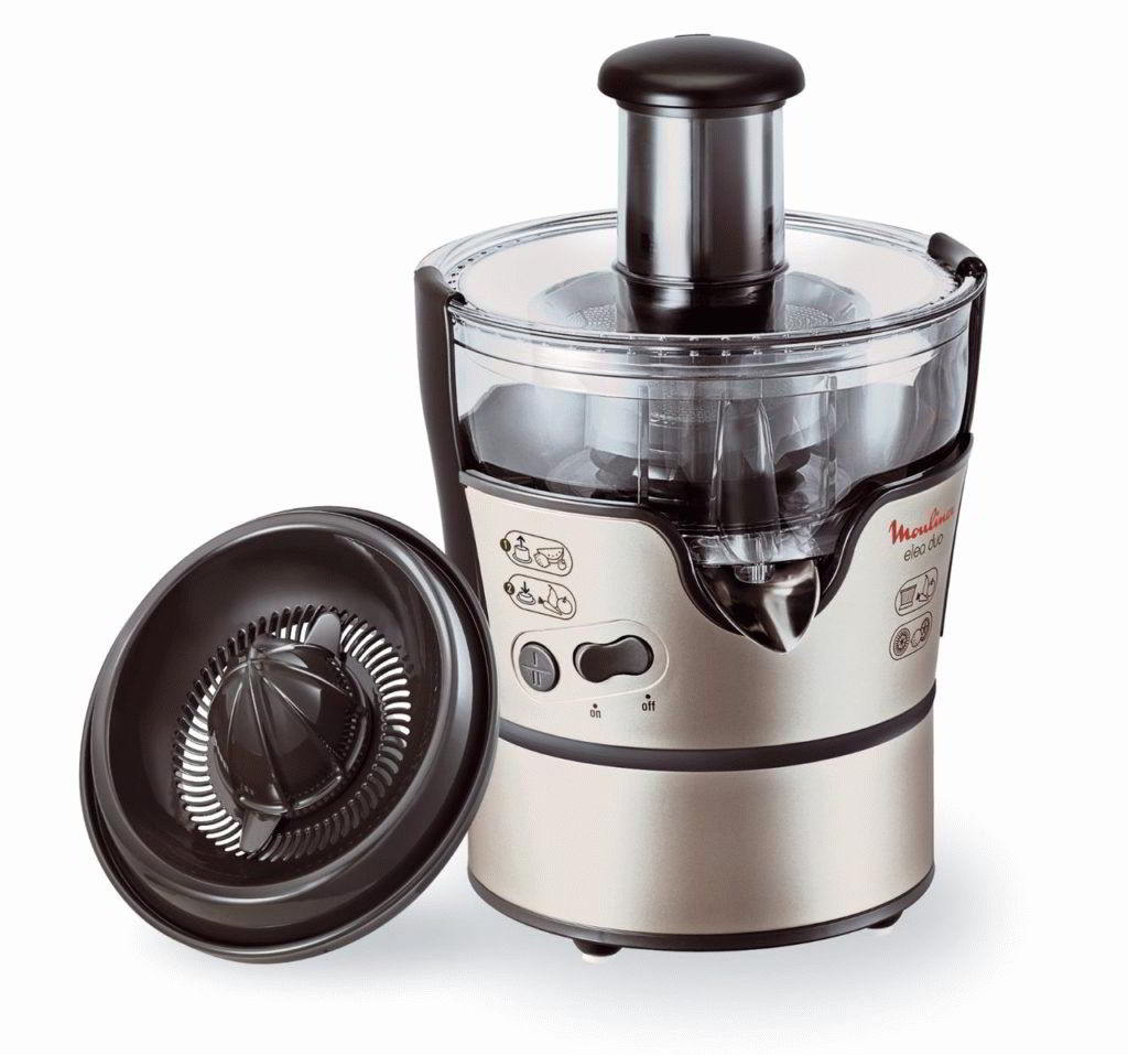 This combined centrifugal juicer has a special attachment for juicing citrus fruits. A powerful enough engine allows you to quickly juice products of different hardness.