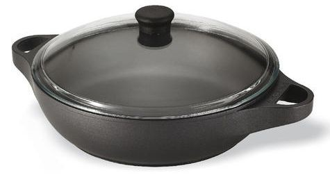 A product with two short handles, capacious volumes, can be purchased with or without a lid, the only difference will be the cost of the stewpan. Nice and stylish exterior design. Can be used for cooking on the stove top or in the oven.