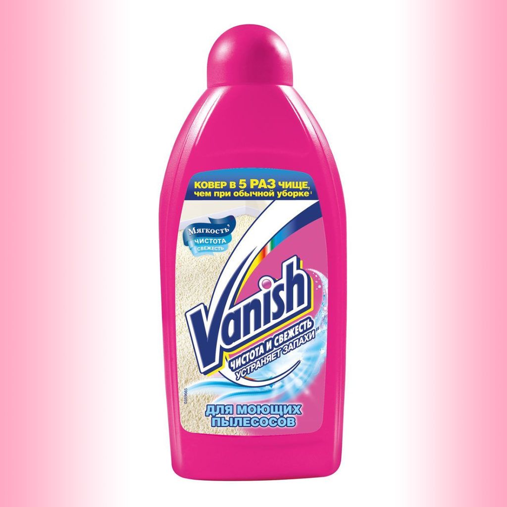 A very popular all-round cleaner for the quick removal of light to medium stains as well as for regular, regular general cleaning. The method of application is simple - the shampoo should be dissolved in water, foamed and treated with the resulting foam using a sponge or brush. Vanish shampoo perfectly copes with unpleasant odors, dust, refreshes the colors, returning the carpet to its original appearance. But he does not immediately cope with old complex spots. Average price - 280 rubles.