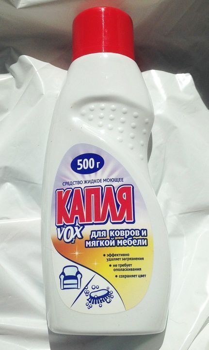 This powder is also used for general cleaning of carpets and furniture upholstery, it cleans well long-pile carpets, thanks to active additives. Copes with dirt, dust and problems such as coffee and tea stains, grease, herbs, but does not remove especially difficult stains the first time. Method of application - the powder must be dissolved in water to form a foam, which is used to treat the contaminated surface. Can be used as a stain remover, add a little water to the powder until a paste is obtained. Average price - 31 rubles.