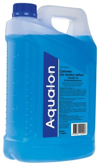 The liquid is a blue professional detergent. Concentrated liquids are produced in large volumes - 5 liters. The substance easily copes with grease, plaque and other stubborn dirt on all types of glass surfaces, including stained glass and plexiglass. In its composition, Aqualon does not contain alcohol, gives the glass a shine, leaving no streaks.