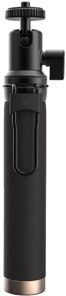 The gimbal can be folded down, making it much easier to move. The handle of the model is made of rubberized material, so it feels comfortable in the hand. The camera is attached using the usual 3 ¼ connector for gadgets, which allows you to install various devices compatible, for example, with any version of GoPro.