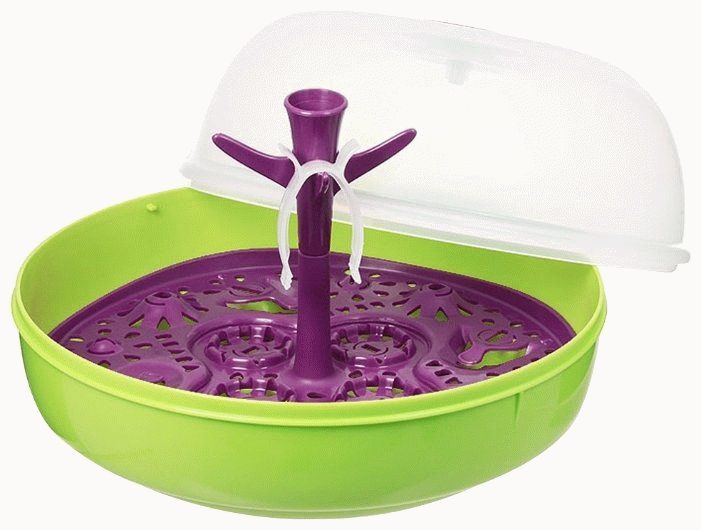 Microwave devices are characterized by compactness and economy. Standard containers hold up to 4 bottles. They are as effective as steam sterilizers. But the cost is much lower.