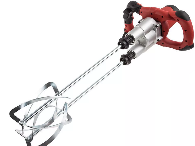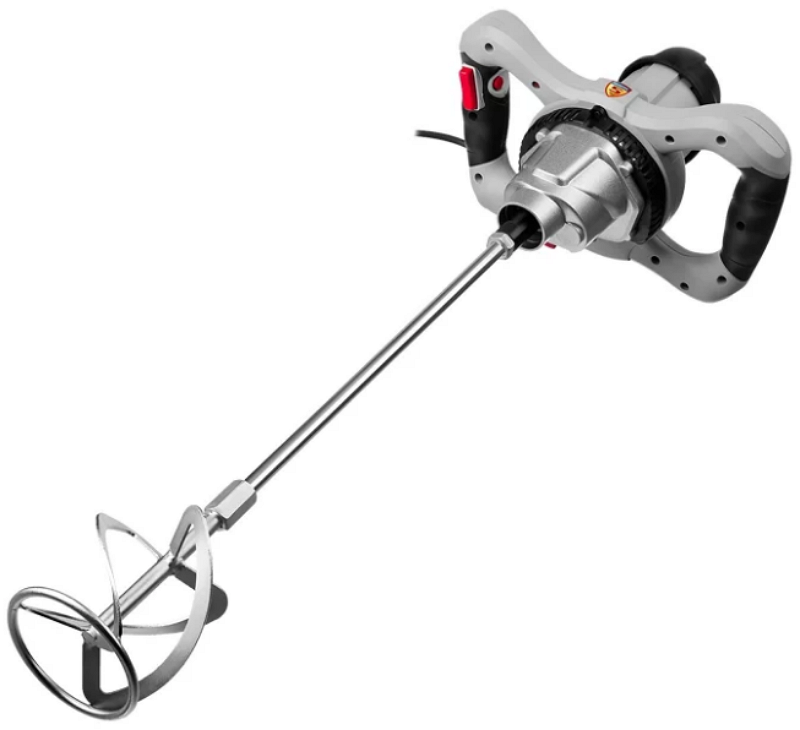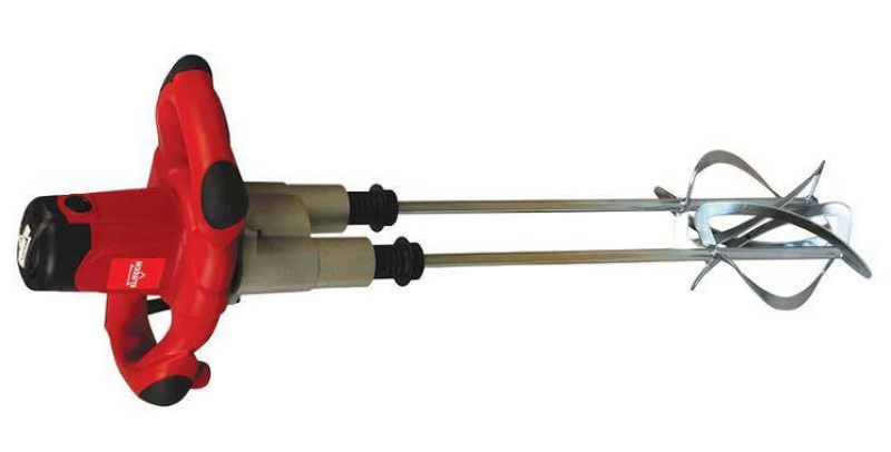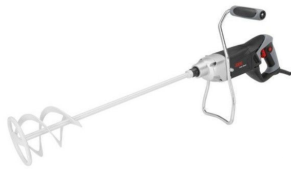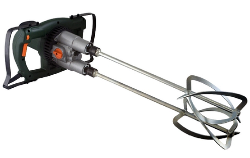 The two spindle handheld construction mixer has a power of 1,600 watts. It is designed for mixing concrete, glue, paint and other mixtures. Low revs in combination with high torque allow to work for a long time under heavy load, stirring the composition well.