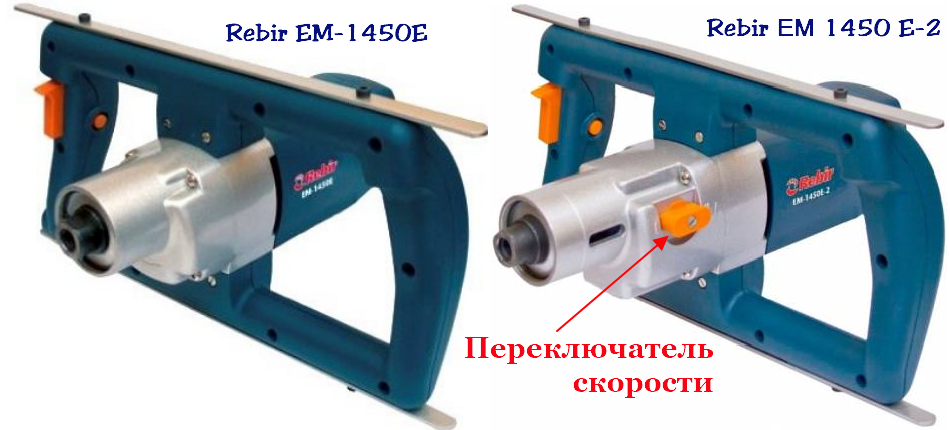 It should be noted that the Rebir EM 1450 E-2 mixer has a mechanical speed switch in the gearbox. The first switch position corresponds to 650 rpm. at maximum engine speed. In the second position, you can get up to 1,000 rpm.