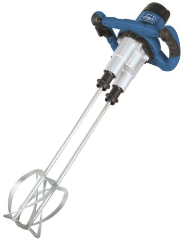 Scheppach PM 1800 D universal twin-spindle mixer with two counterclockwise blades. The spindle thread is M14. It copes with long-term work when mixing concrete with gravel or sand. It also mixes any finishing and building materials that need to be mixed. If necessary, you can use one nozzle without tripping the shutdown protection.