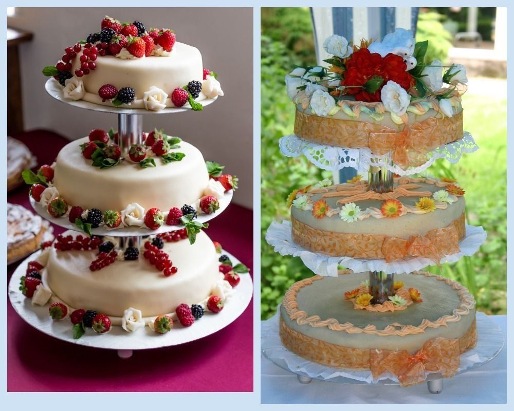 If a large event is planned and the weight of the dessert is 4-6 kilograms, then the number of tiers is stipulated, with the weight of one tier over 7 kilograms, special separator stands are used.