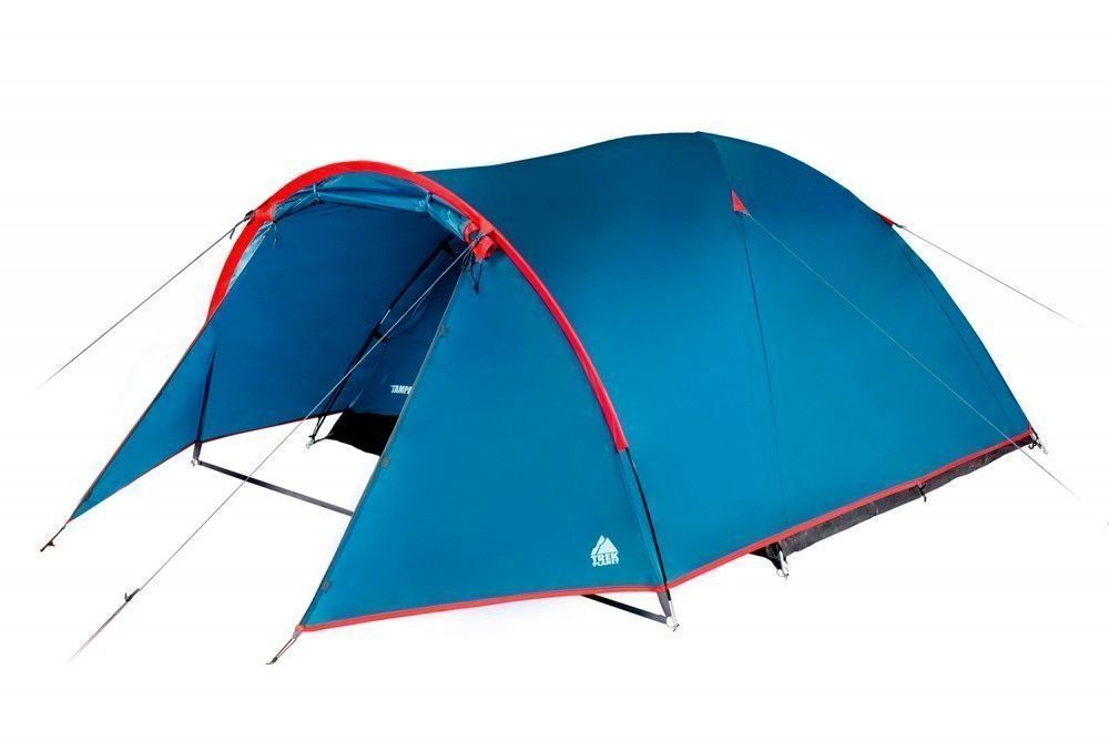 Spacious camping tent for four people. Has a vestibule with a mosquito net. Weighs 5.5 kg. It costs 700 rubles.