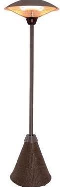 Outwardly, the design resembles a mushroom. It is made of corrosion-resistant metal. Stand height - 222 cm, width and length - 81.3 cm, net weight - 15 kg. For comfortable movement, the base of the heater is equipped with castors. The device works on liquefied gas. The maximum heating area is 18 sq.m. Fuel consumption - 0.95 kg / h. The permissible power of infrared heating is 13 kW.