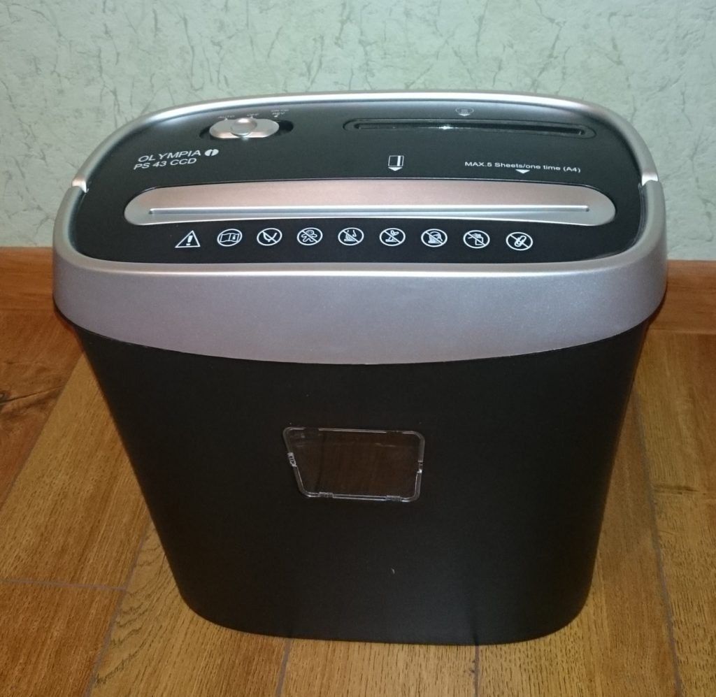 Olympia PS 43 CCD sits on the edge between industrial and office shredders. It can be used even at home. The device is trying from the outlet. The handle for lifting the unit's cover helps to quickly free the unit from debris. The waste bin has a special viewing window to see how full the container is. The device is efficient enough, therefore it makes a lot of noise.