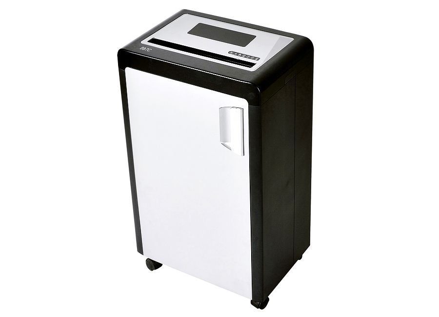 This model will cost 10,500 rubles. The device also weighs 20 kilograms like the previous model. The power of the device is amazing. Can cut discs, credit cards and sheets of paper. A useful piece for a large office. The basket volume of 30.3 liters will delight any user. The machine will detail almost any material that contains documents. Even thick envelopes "gobble up" without problems. Can cut 2 envelopes at the same time.