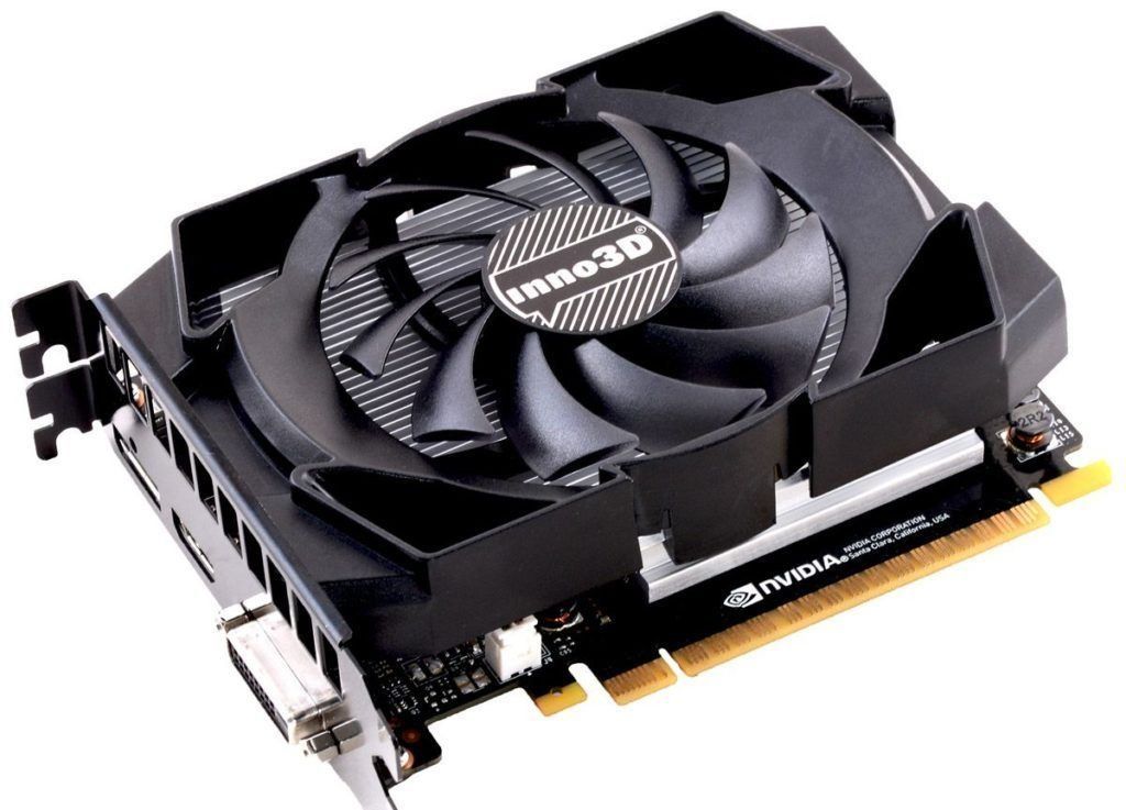 Inno3D GeForce GTX 1050 is a good and cheap video card with low power consumption, 14 nm process technology, providing a screen resolution of 7680X4320. It can broadcast a signal to three monitors, has a GPU frequency of 1290 MHz. The card with a capacity of 4096 MB has a GDDR5 memory type with a frequency of 7 GHz, it has a 128-bit bus. Supports DVI-D, HDCP and HDMI connectors. 5.0 shaders, 48 texture units. The model is designed to work with standards such as DirectX 12 and OpenGL 4.5 and 400W power supplies. This video card provides support for CUDA and Vulkan, there are two fans. This model is included in the class, which is made up of low-cost electronic components for a computer and costs 12,000 rubles.