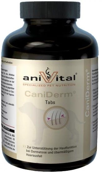 Vitamins for dogs to improve skin health, growth and hair loss.