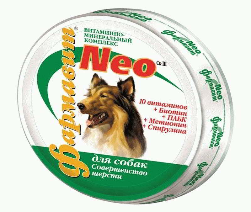 Budget vitamins of different directions are presented in the Farmavit Neo line, produced in the Russian Federation. There are various complexes for: pregnant and lactating dogs, puppies, for wool, for shedding, etc. The vitamin and mineral complex is suitable for eliminating the deficiency of useful elements, stimulating the immune system and enhancing the protective functions of the body. The recommended course of vitamins is 60 days. After a month break, repeat the course again.