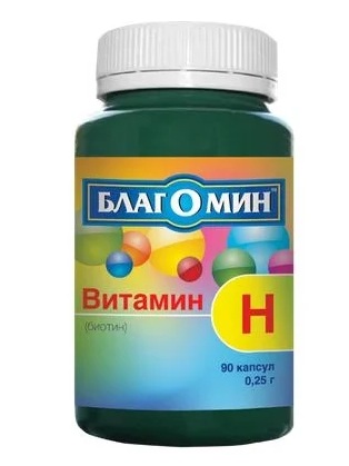 Blagomin vitamin h (biotin) caps. 150 mcg No. 90 for adolescents from 14 years old and adults. It improves the condition of the skin and hair. Each capsule contains the active ingredient - vitamin H - 150+15%, microcrystalline cellulose. Thanks to biotin, the intestinal flora normalizes, blood sugar stabilizes, hair stops falling out, ailments are eliminated - neurological disorders, depression.