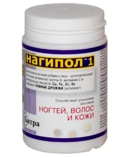 The complex is primarily aimed at eliminating the fragility of the nail plate, optimizing the growth of skin and hair cells. Autolysate of brewer's yeast, various vitamins, enzymes, protein substances, carbohydrates and other trace elements act as an active ingredient.