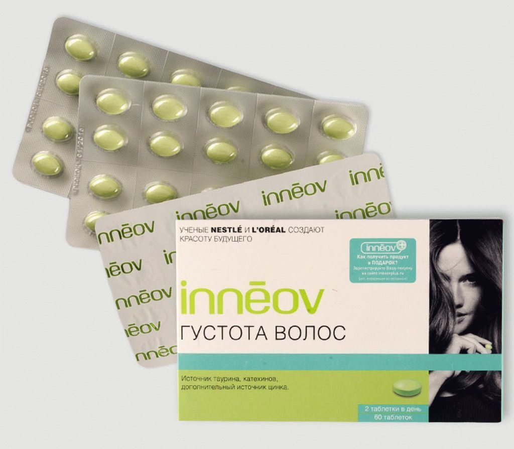 In addition, this complex includes extracts from green tea and grape seeds. Thanks to the beneficial composition of Inneov, they enhance blood circulation, nourish the hairs with high quality. Zinc, which is part of the vitamin preparation, takes part in the production of keratin.