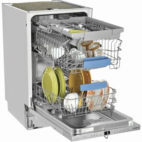 Another model from a well-known brand. It does not have a wide range of functions, but many buyers prefer it. Since the Bosch company is a budget purchase and a long service life. A 45 centimeter machine will become an indispensable assistant in the kitchen; it is possible to load up to 9 sets of dishes into it in one cycle. Moreover, there are only four washing modes, one of which is partial loading. This will require more than 10 liters of water. This is normal functionality for a budget look. Installing it in kitchens will not be difficult, many do it themselves.