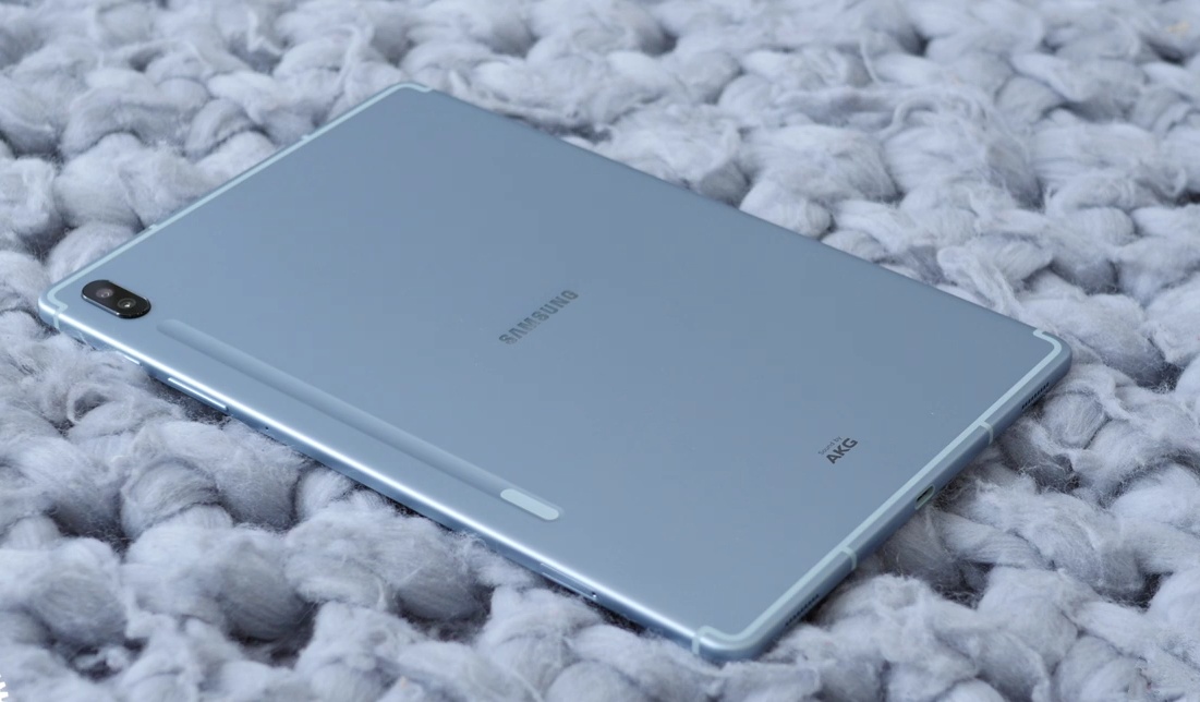 The new model is thinner than its predecessor, the Galaxy Tab S4, but only slightly (0.2mm) thicker than the Galaxy Tab S5e. The body of the design weighing 420 grams is made of aluminum and is available in three color variations: pink (Rose Blush), sky blue (Cloud Blue), gray (Mountain Gray).