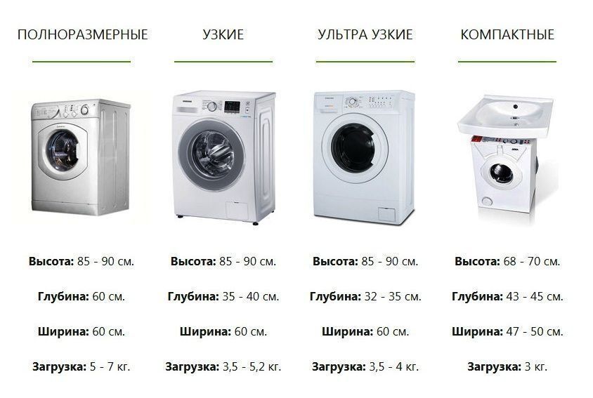 In addition to the width and depth, the loading option is selected: for the vertical, the cover opens from the top, for the front one - from the side. Vertical units are more convenient for loading and unloading, they can be installed sideways and directly against the wall. Dimensions 90 x 40 cm, depth 60 cm. Both versions can be of full size. Recessed - front only. Frontal structures require space to fully open the hatch, otherwise there will be problems with backfilling and recess.