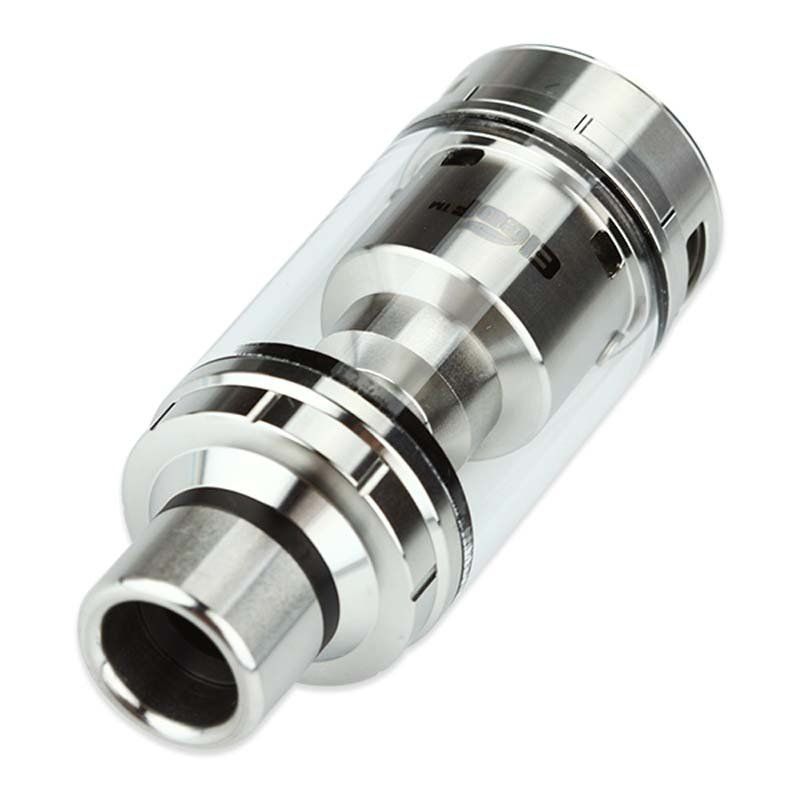 The Chinese manufacturer has released a Hobbit atomizer model with removable vaporizers. So far, it is in 9th place in comparison with the promoted competitors. The case is without engravings, made of stainless steel and glass, and the plastic top has good heat resistance. Small tank with top filling. The peculiarity and inconvenience lies in the fact that removable evaporators from other manufacturers will not fit here.