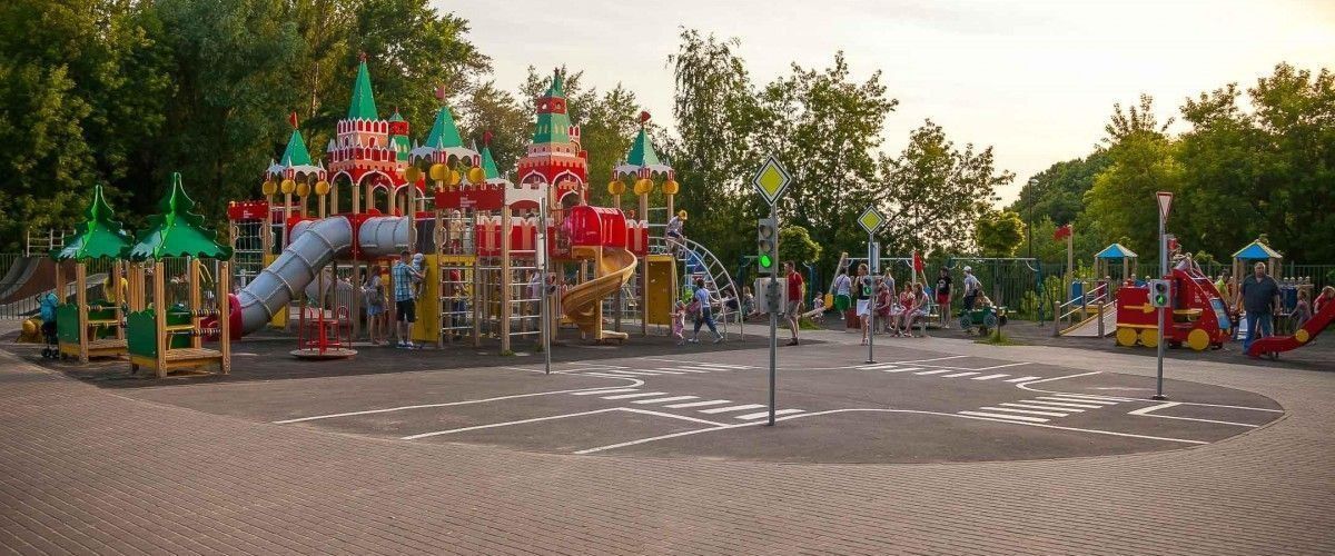 The equipment is intended for children from 3 to 12 years old. Among a large number of objects there are standard elements (slides, rockers, carousels, horizontal bar). The rope maze will not leave indifferent any child. But there is also a tennis table, which will be more interesting for teenagers. But by simulating a track with traffic lights, you can teach a child the rules of road behavior. A separate area is reserved for children with musculoskeletal disorders. There are so many attractions that adults will find entertainment for themselves. For example, go for a ride on a web swing.