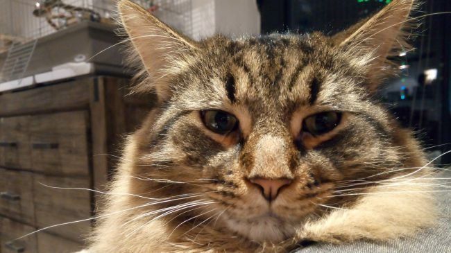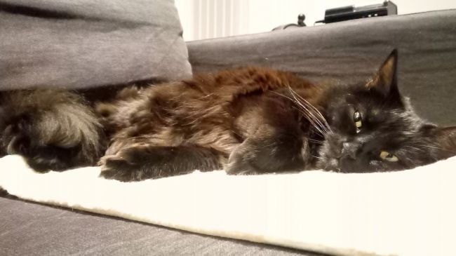 Black cats always turn out well. Alas, most of the fur in the picture is very fuzzy (not literally) and not as fluffy and vibrant as in the original.
