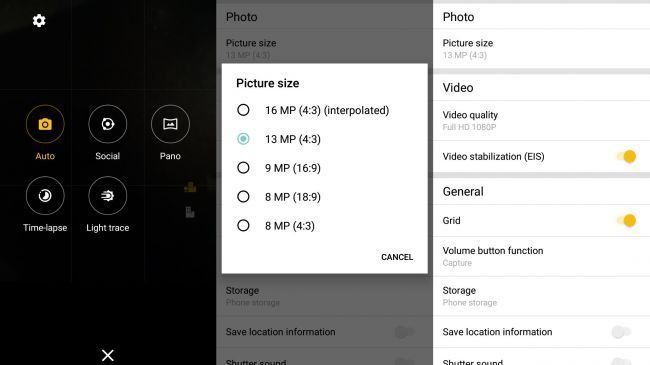 Interpolation often results in "fuzzy" photos that don't hold up well when zoomed in, so if you're using this phone make sure to switch to the second setting on both the rear and front cameras.