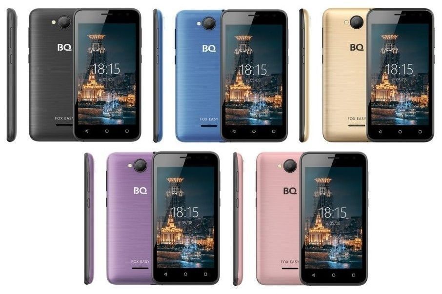 The potential buyer gets the initial impression of the new smartphone model by evaluating its external data. The BQ 4501G Fox Easy is available in color options to suit different tastes: Black, Purple, Blue, Gold and Pink Gold. The lid has a brushed effect. Case material - plastic. The overall dimensions of the device (when oriented during use) are: width - 68 mm, height - 133.8 mm, thickness - 10.3 mm. Weight - 134 g. Visual perception of the product design leaves a favorable impression. Further, it is important to evaluate the filling of the model in question.