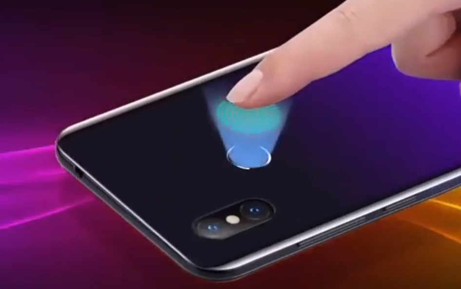 On the back panel in the center there is a fingerprint scanner, in the upper left corner there is a vertical main camera.