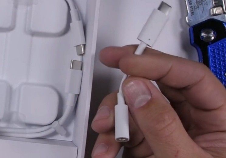 The set includes an envelope with instructions, a paper clip, a charger. To the plug of the American type charger, you will need an adapter to adapt it to Russian sockets. There is a usb to type-c adapter in order to connect ordinary headphones, since there is no standard jack 3.5 for headphones.