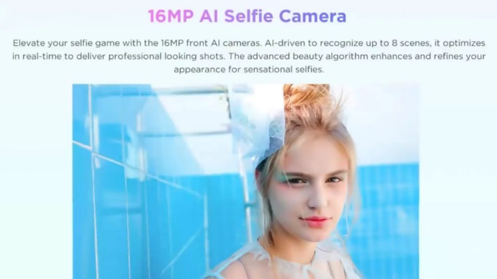 The secondary (selfie) camera housed in a notch on the front has a 16 megapixel sensor at its disposal. The front camera supports HDR and records video in 1080p @ 30fps.