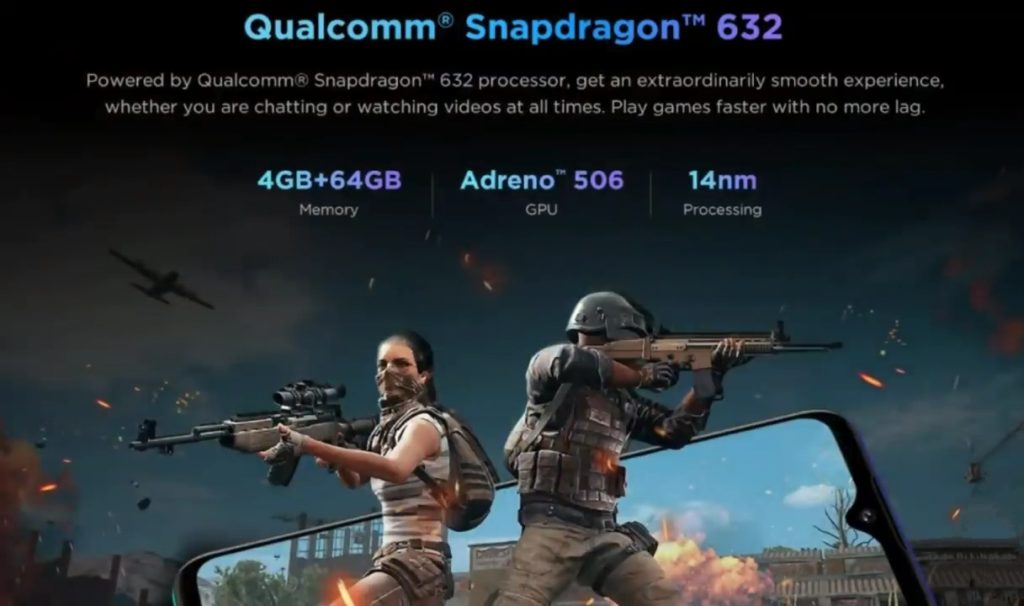 In the phone device, the Snapdragon 632 chipset, made according to a 14 nanometer technological process, is used not the newest, but quite productive for the budget segment. The video accelerator Adreno 506 is used as a game component.