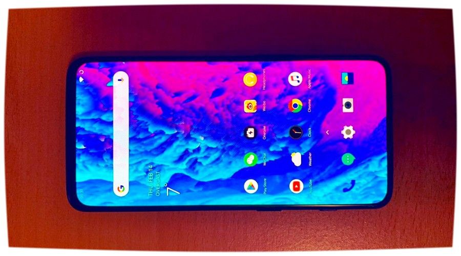The ultimate display sharpness is 650 cd / m2. In this regard, while watching content in the sun, there will be no difficulties. The contrast is great. On the back of the OnePlus 7 is a triple camera setup, an LED-type flash and a fingerprint sensor.