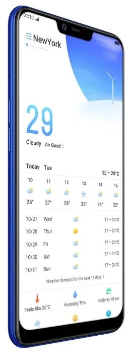 The aspect ratio is 19 to 9 with a 15.75 cm diagonal and a resolution of 1520 by 720 pixels. The resolution is high, so movies and games will look juicy.