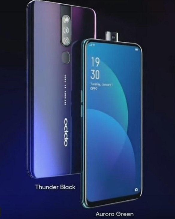 Externally, the new smartphone from Orro does not have any features. The front panel is a virtually bezel-less screen with the exception of a small indent at the bottom of the front side. The "back" of the device is a bearer of color, of the possible colors, only one variant is known so far - Glacier Blue or glacier blue. There is also evidence that two more colors are possible - thunder black (thunderous black), aurora green (bright green). In the center is a fingerprint scanner and a dual main camera along with a flash. The main feature and novelty at the same time is the retractable front camera, which smoothly "slides out" in the center of the body above the screen when you need to take a picture. It was this function that freed the front panel from the top margin of the frame and gave the Oppo F11 Pro elegance and mystery.