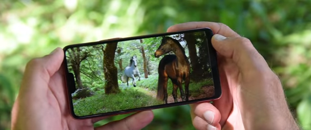 The screen takes up almost 90% of the phone's area. The display glass, Gorilla Glass 5, is protected by an oleophobic film. There is a small window (cutout) in the upper part. This increases the usable screen area. To the left and right of the cutout fit a clock, mobile networks information, Wi-Fi, battery indicator.