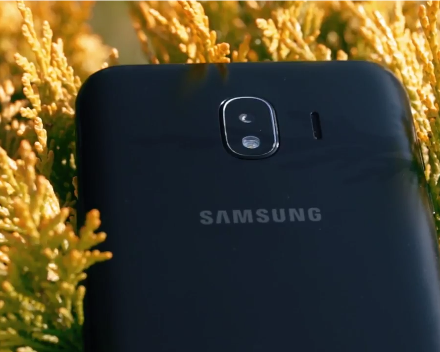 The rear panel is equipped with one lens of the main, rear camera with LED flash alongside. At the top of the screen is a front-facing selfie camera + flash. The functionality of the updated device Galaxy J4, as before, is represented by the central physical button "Home" + 2 touch buttons.