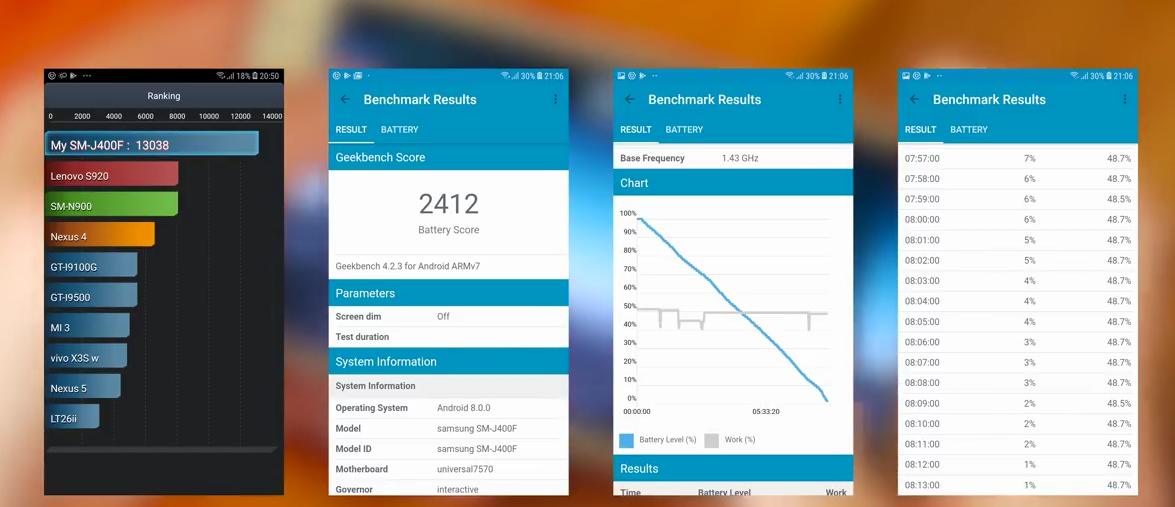 We can confidently say that among smartphones of this class, Samsung J4 2026 has a predominant number of working hours. The phone will work without problems for 2-3 days and with a working screen for 5-7 hours. And these are average, not maximum marks. It all depends on the direction of use. There is also a power consumption mode - a function, frankly, necessary at the present time, because the battery life increases significantly and mainly due to the display brightness settings.