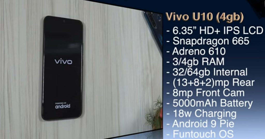 The Vivo U10 comes with a 6.35-inch HD + IPS display. The screen also features a teardrop notch for the camera's selfie. The existing protective glass prevents scratches. Vivo U10 is equipped with a fingerprint sensor and the ability to read faces for security purposes. The company claims that unlocking your phone is more convenient, secure and smoother than ever.